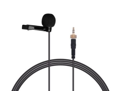 Malý klopový mikrofon kompatibilní s chytrými telefony, digitálními zrcadlovkami, videokamerami, záznamníky zvuku, laptopy atd. Délka kabelu 2m