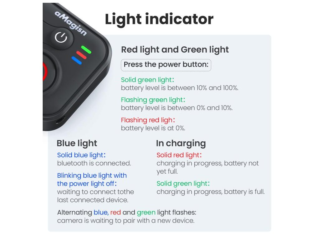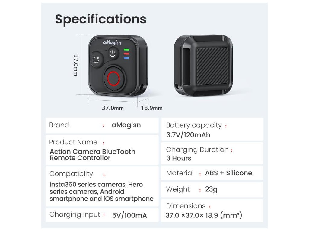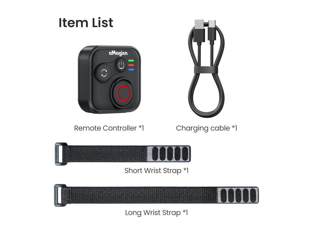 1× bezdrátový Bluetooth dálkový ovladač aMagisn pro kamery Insta360, GoPro HERO a chytré telefony.
