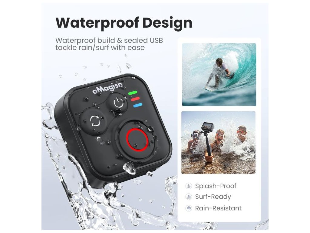 Konstrukce je navržená pro použití venku: ovladač má voděodolné provedení a silikonové těsnění nabíjecího (USB) portu, takže ho lze používat i v dešti nebo u vodních sportů. Výdrž je podle testu výrobce až 96 hodin na jedno nabití (testováno laboratoří aMagisn při použití s kamerou Insta360 na selfie tyči).