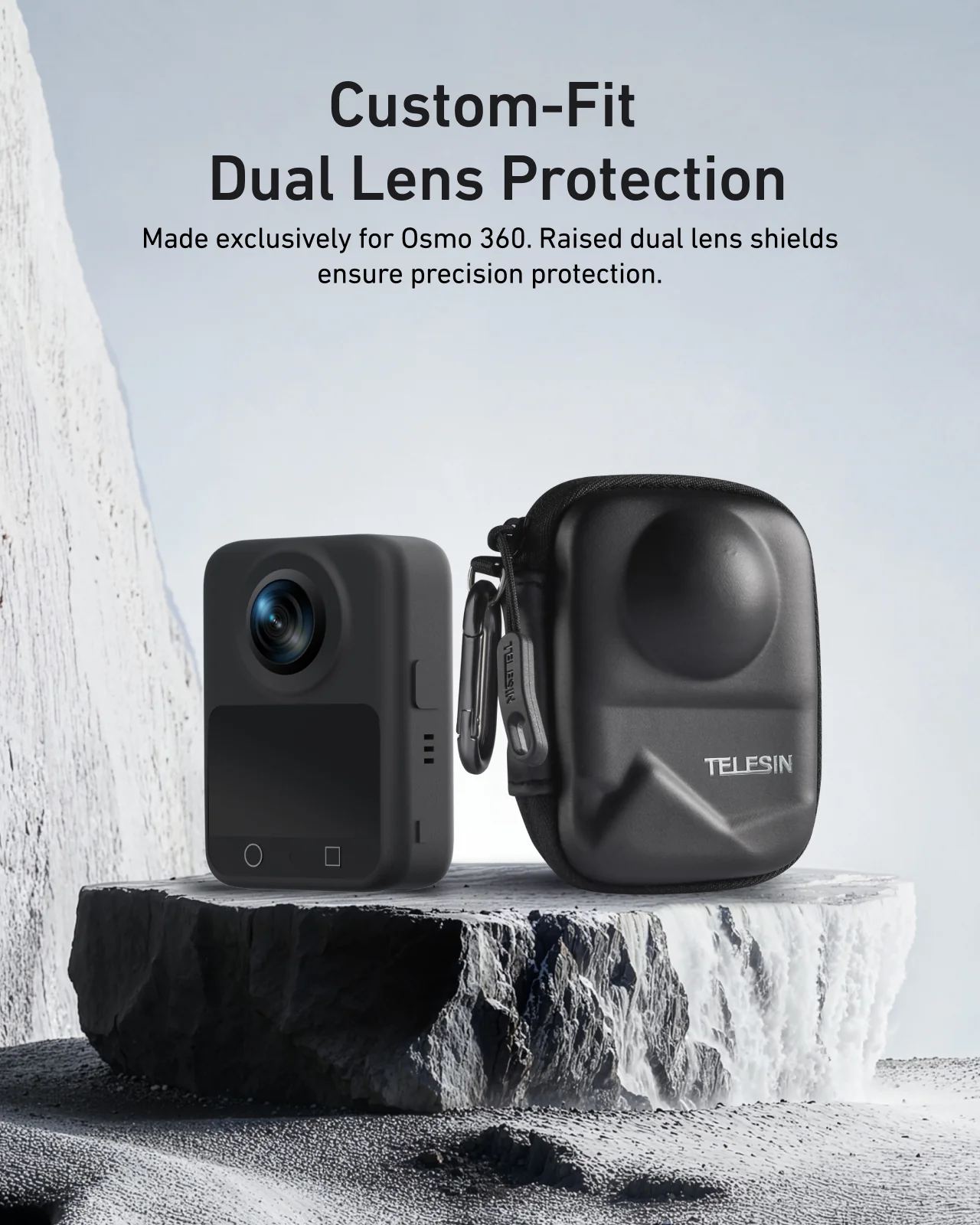 Kompaktní, odolné a připravené chránit. Toto pevné pouzdro od značky TELESIN je ideálním řešením pro bezpečné uložení a přenášení vaší kamery DJI OSMO 360. Precizně tvarované tělo z EVA materiálu zajišťuje dokonalou ochranu před nárazy, poškrábáním i prachem – ať už kameru nosíte v batohu nebo zavěšenou na opasku.