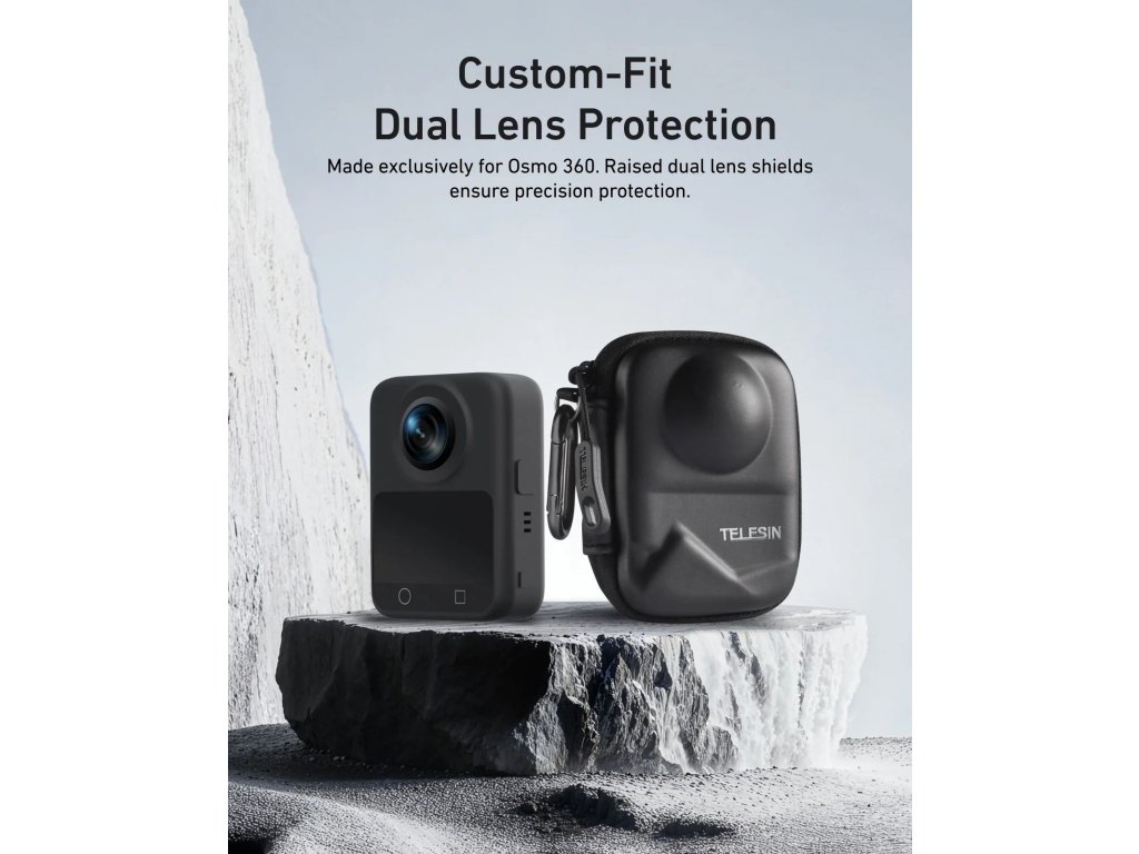 Kompaktní, odolné a připravené chránit. Toto pevné pouzdro od značky TELESIN je ideálním řešením pro bezpečné uložení a přenášení vaší kamery DJI OSMO 360. Precizně tvarované tělo z EVA materiálu zajišťuje dokonalou ochranu před nárazy, poškrábáním i prachem – ať už kameru nosíte v batohu nebo zavěšenou na opasku.