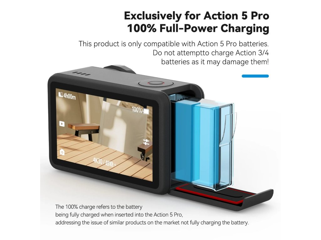 každého, kdo používá DJI Action 5 Pro nebo Action 4 a potřebuje mít všechny baterie i karty vždy připravené a na jednom místě.