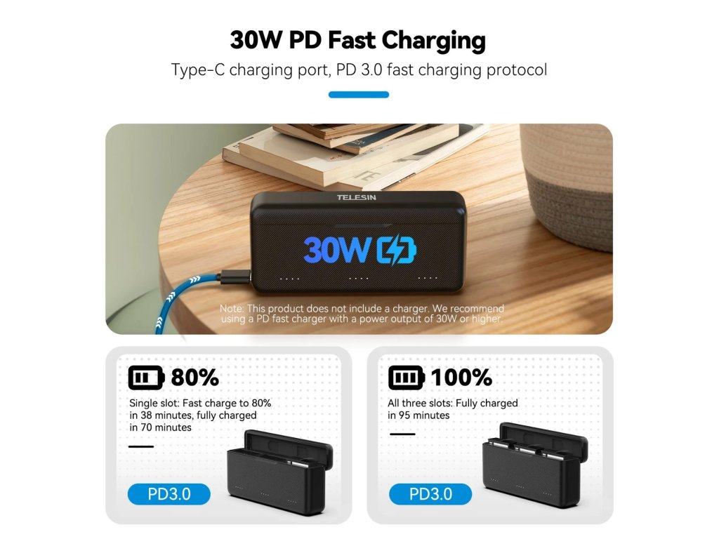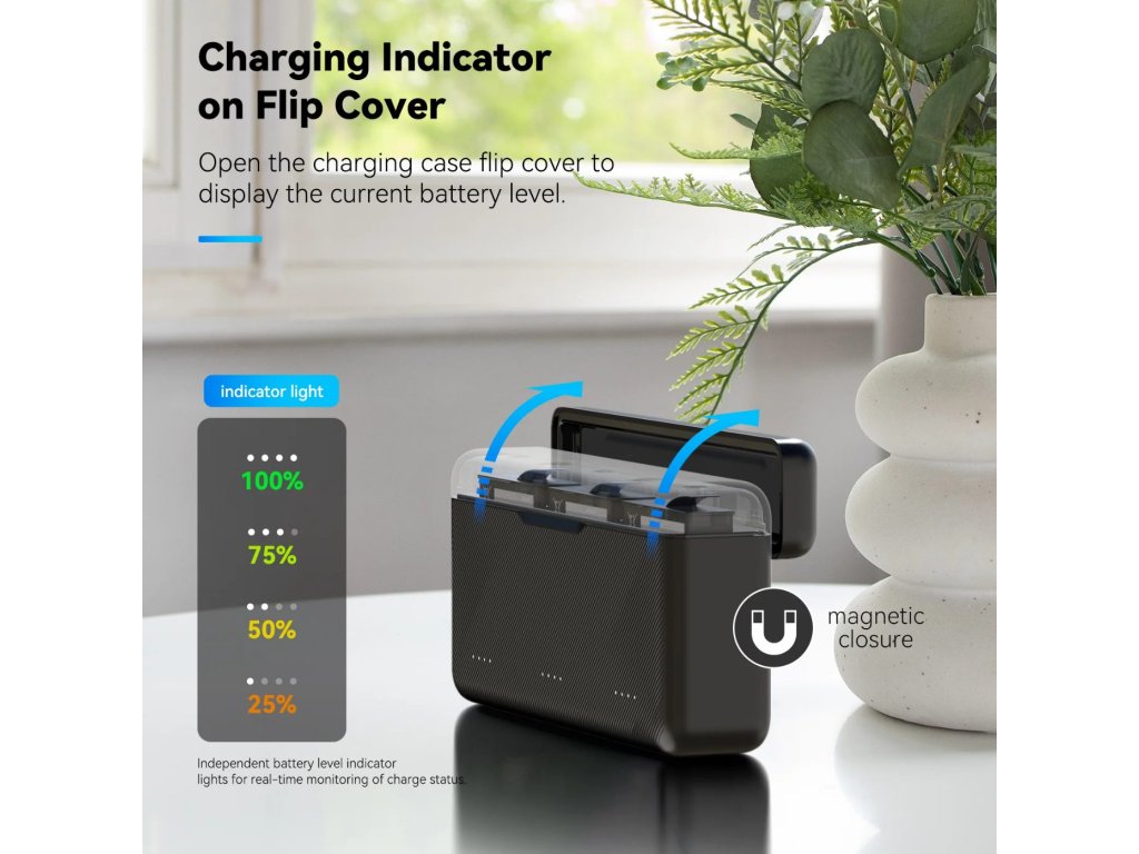 - Tři sloty pro baterie: nabíjí až tři baterie najednou, takže už nikdy nebudete řešit, která má ještě energii.