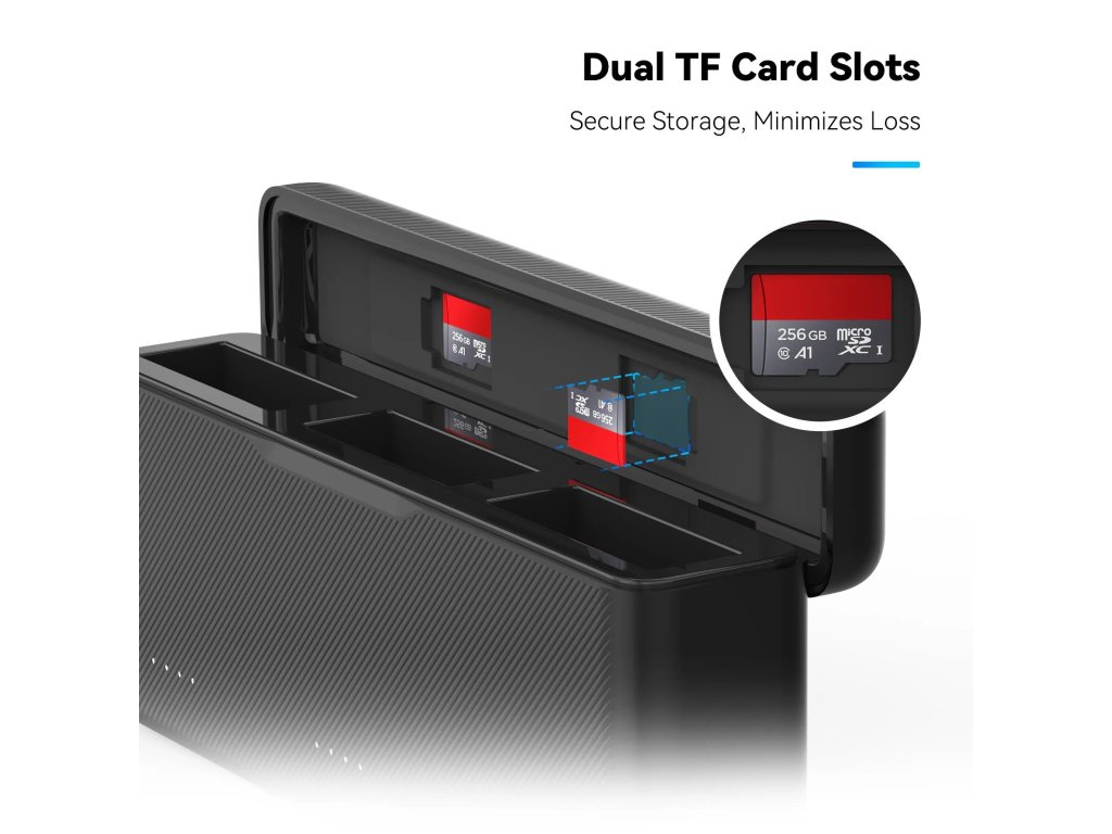 - Praktické detaily: integrovaný slot na dvě microSD karty zajistí, že budete mít vždy paměť připravenou po ruce.