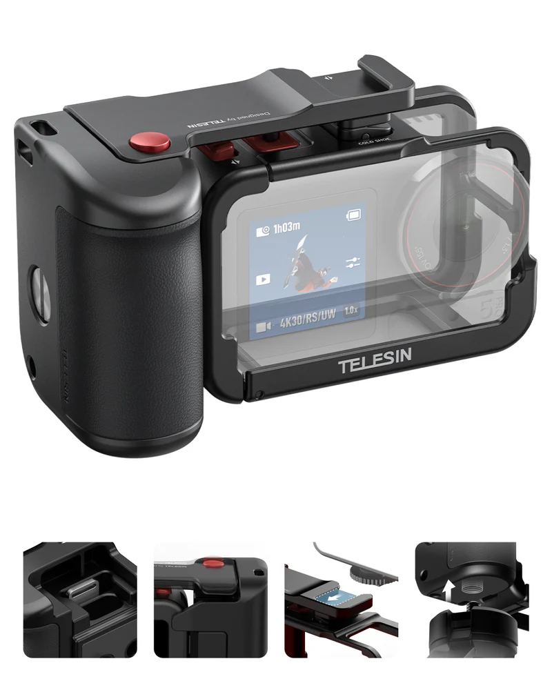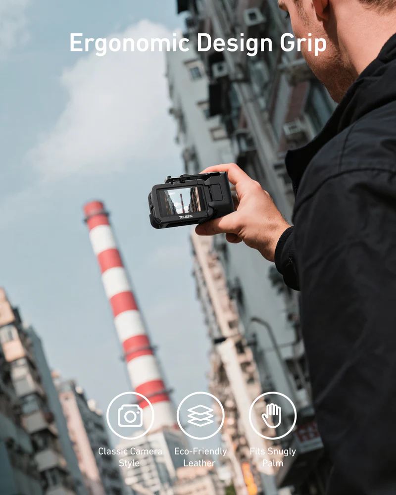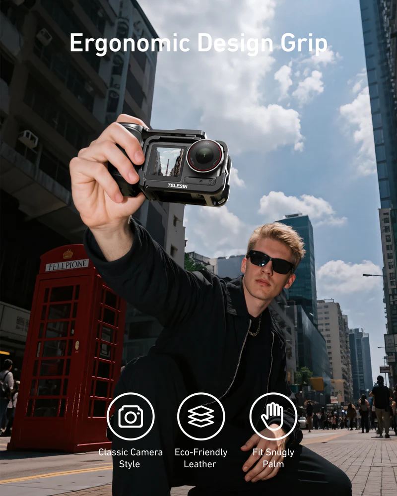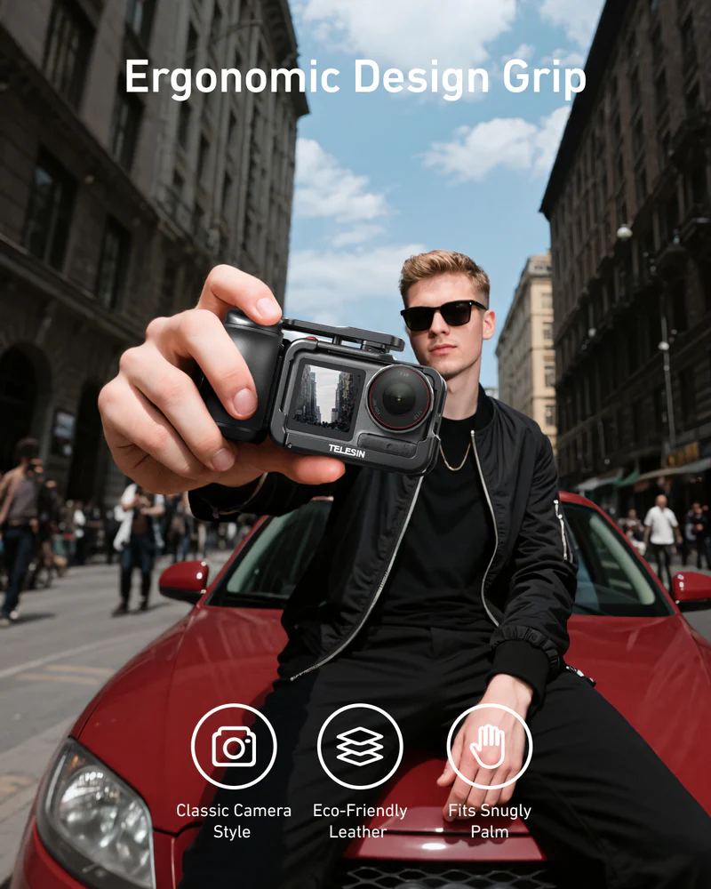Profesionální úchop, bezpečí a kontrola v jednom. StreetGrip od TELESIN promění vaši DJI Action kameru ve skutečný filmový nástroj. Kombinuje ergonomické madlo s precizní ochrannou klecí, takže máte při natáčení naprostou jistotu, pohodlí i styl. Ideální pro vlogery, street tvůrce a každého, kdo natáčí v pohybu.
