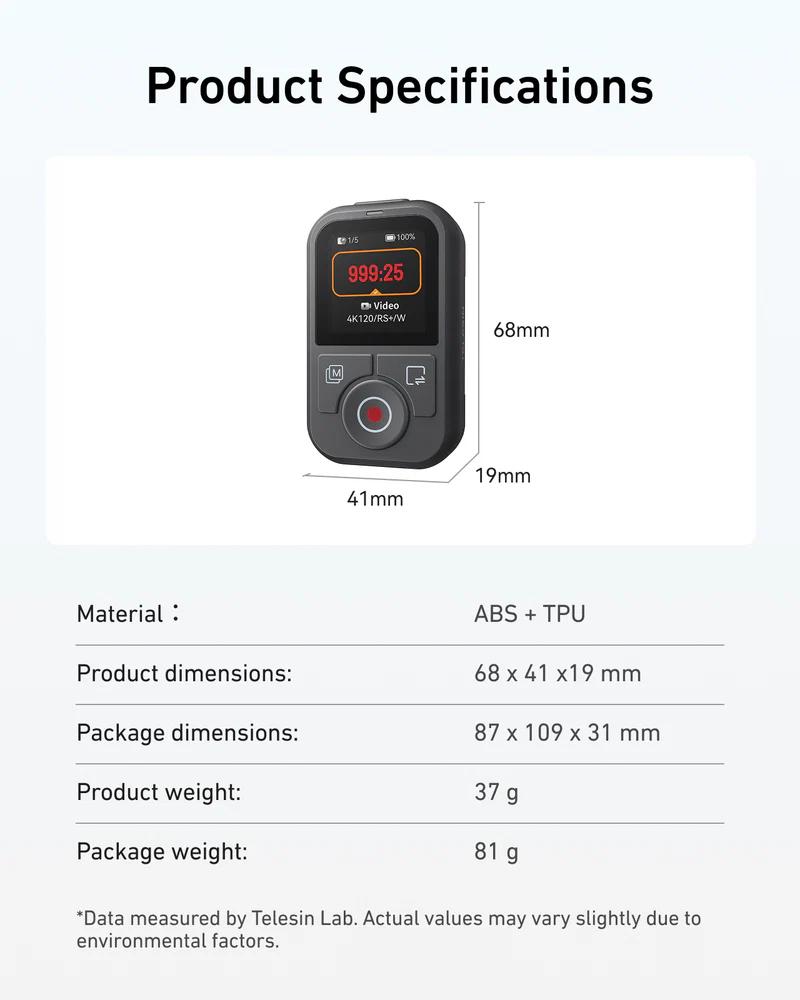 Obsah balení: 1× dálkový ovladač TELESIN T13.