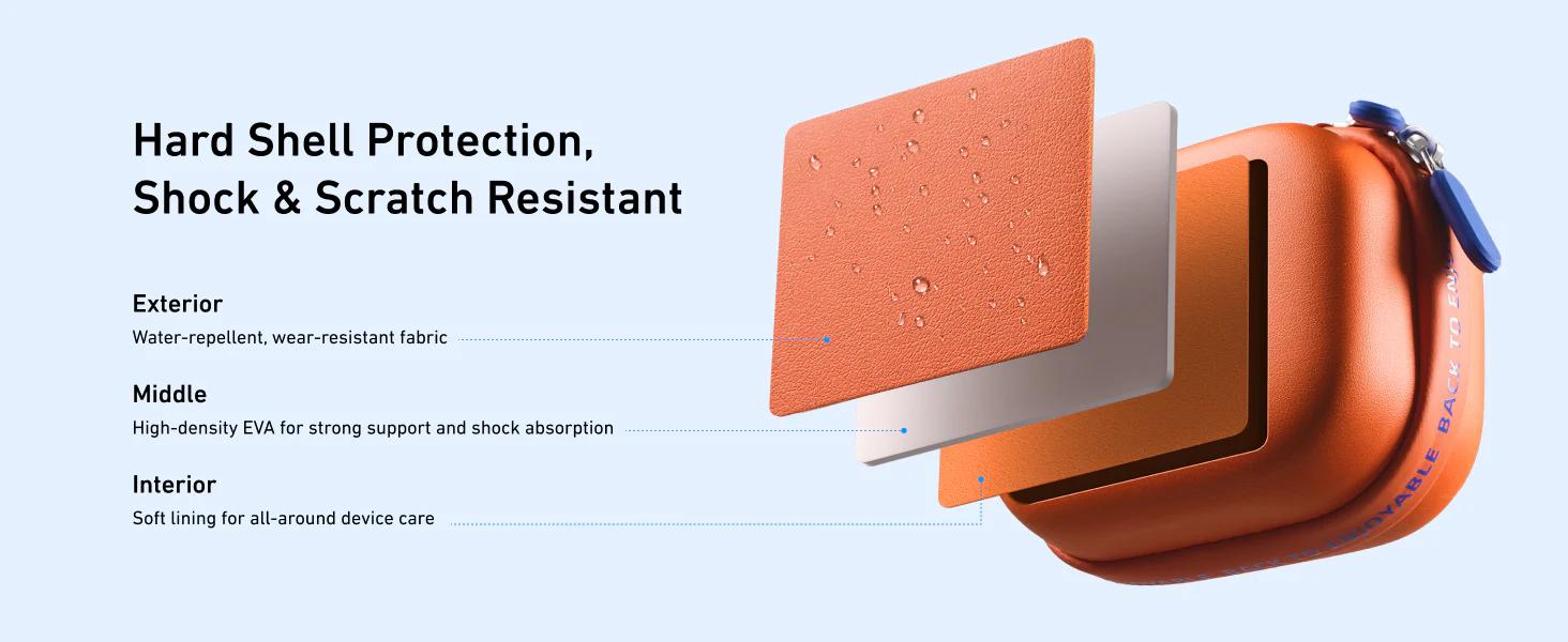 - Pevná ochranná skořepina: Odolá nárazům, pádu i poškrábání — ideální pro cestování a outdoor.