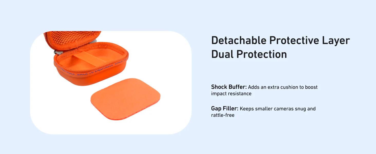 Kompaktní, pevné a stylové pouzdro navržené pro snadné a bezpečné přenášení akčních kamer a drobného příslušenství. Odolná skořepina chrání obsah proti nárazům, poškrábání i každodennímu opotřebení. Díky malým rozměrům je ideální na cesty, do batohu i na rychlé každodenní používání.