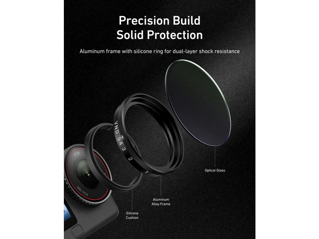 - Odolná rámová konstrukce: Lehký a pevný hliník chrání filtr a nepřidává téměř žádnou hmotnost kameře.