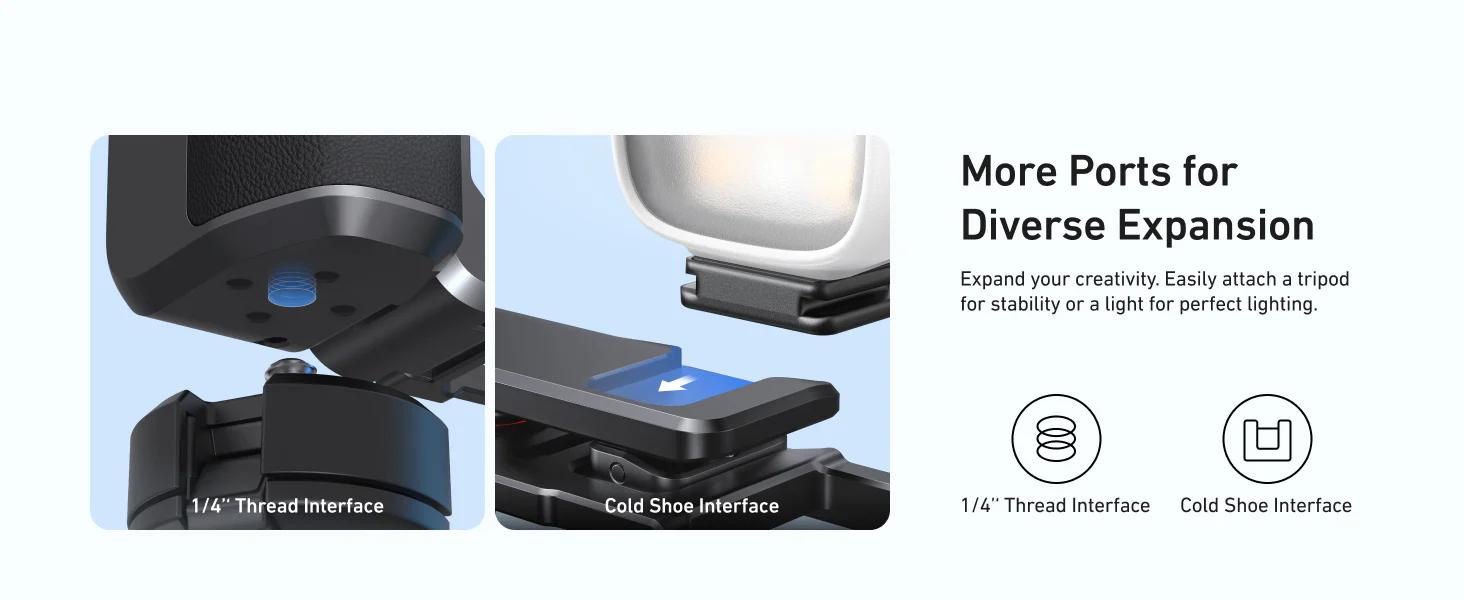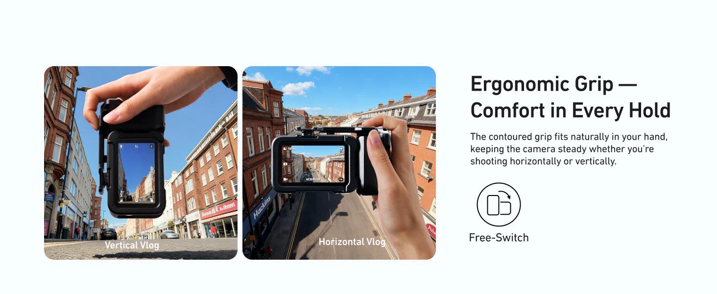 Vlogování, „street“ záběry, cestování a natáčení v pohybu, kdy chcete pevnější úchop a stabilnější záběry. Díky možnosti přidat stativ nebo přisvětlení se hodí i pro tvůrce, kteří chtějí z akční kamery udělat kompaktní, ale prakticky rozšiřitelnou sestavu.