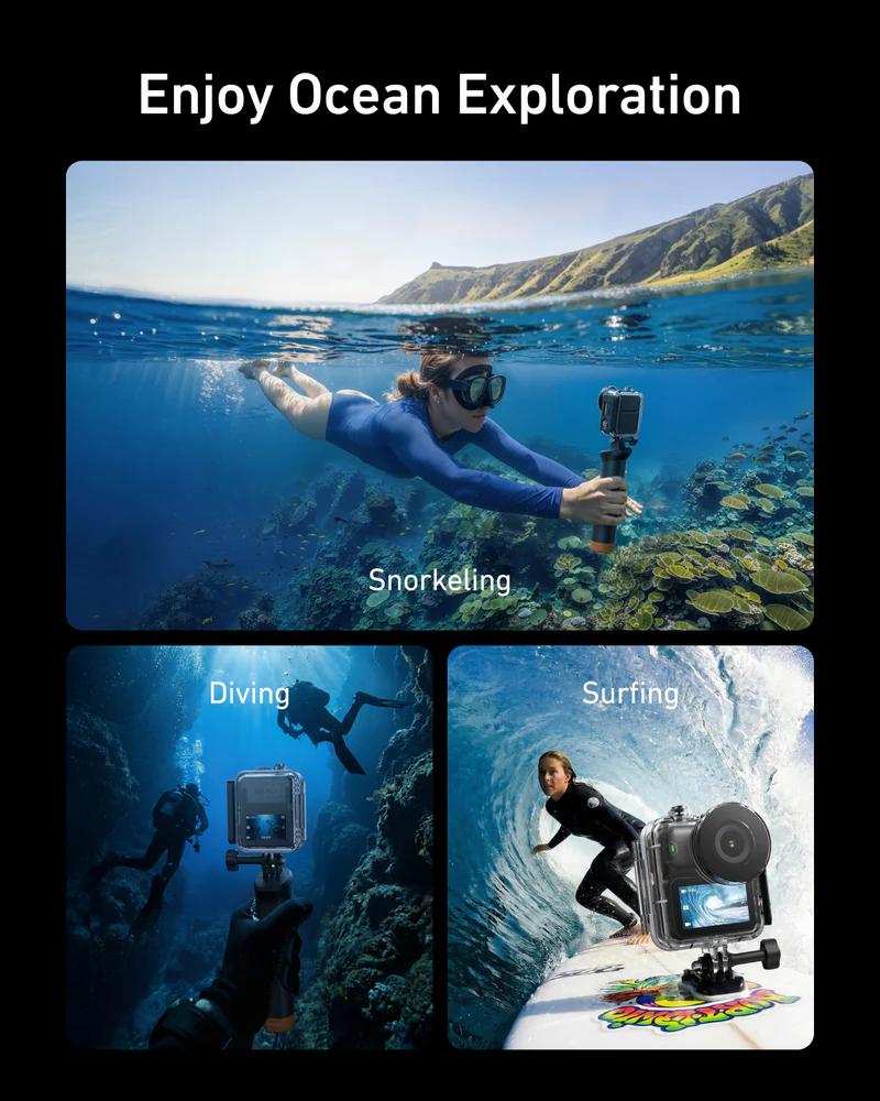 - Odolnost vůči tlaku a nárazům: robustní konstrukce chrání kameru při potápění i v tvrdších podmínkách.