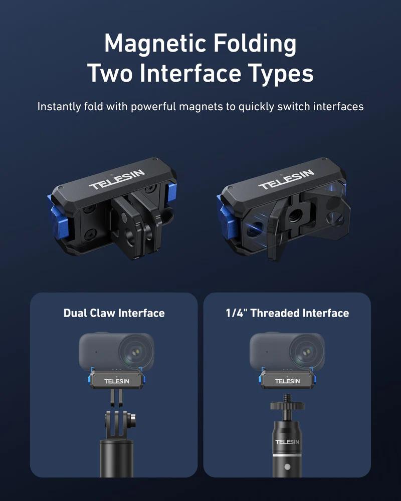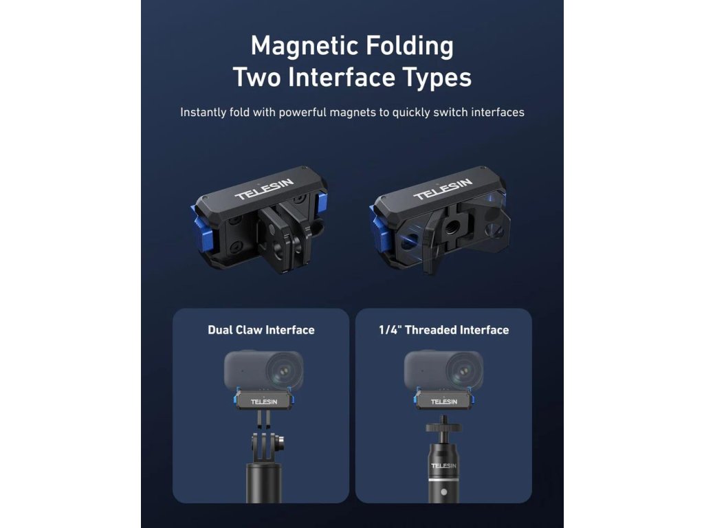 TELESIN hliníková svorka s magickou kloubovou rukou je univerzální upevňovací řešení pro akční kamery, které umožňuje bezpečné a flexibilní uchycení kamery na řídítka, trubky, rám, madla nebo jiné pevné objekty. Robustní konstrukce a kloubový systém poskytují široké možnosti nastavení úhlu záběru i v náročných podmínkách.