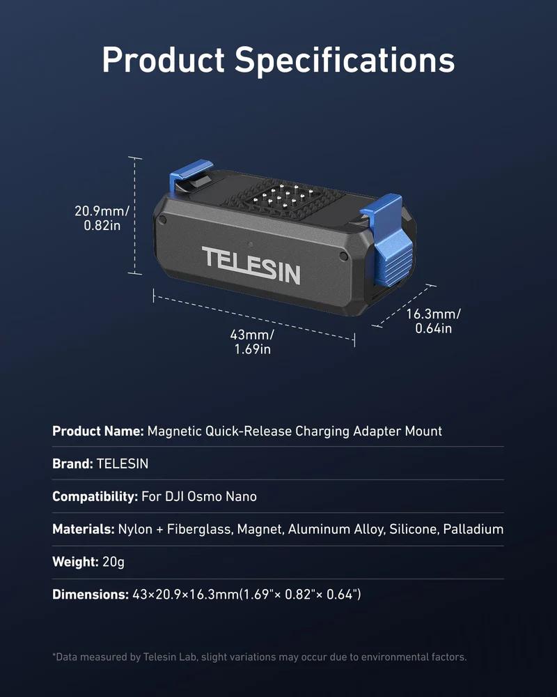 1× rychloupínací USB-C nabíjecí adaptér / držák TELESIN pro kameru DJI Osmo Nano.