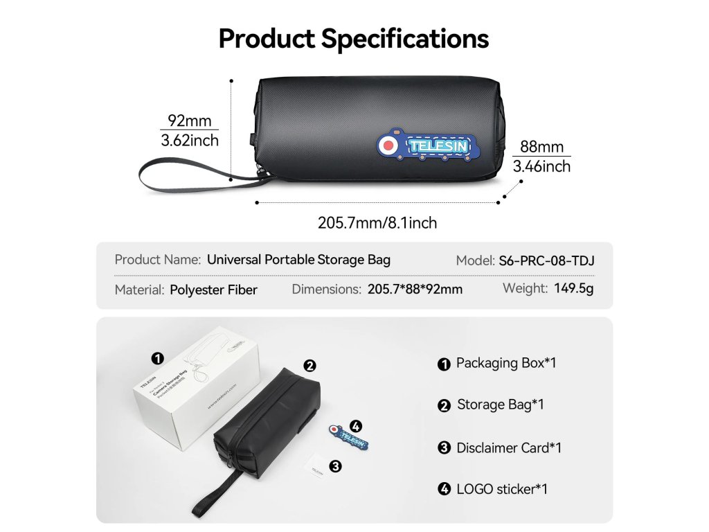 Tato přenosná úložná taška od značky TELESIN je navržena speciálně pro DJI Pocket 3. Nabízí praktické a bezpečné uložení kamery a jejího příslušenství. Vyrobena z odolných materiálů, chrání vaši kameru před poškozením při přepravě. Taška je lehká a kompaktní, ideální pro cestování a každodenní použití.