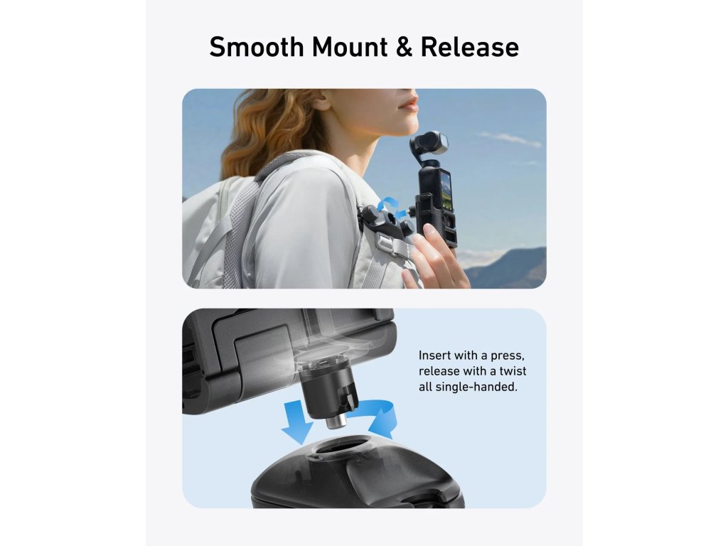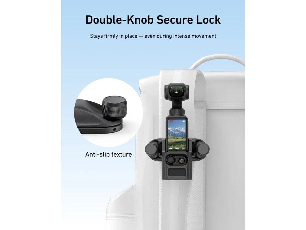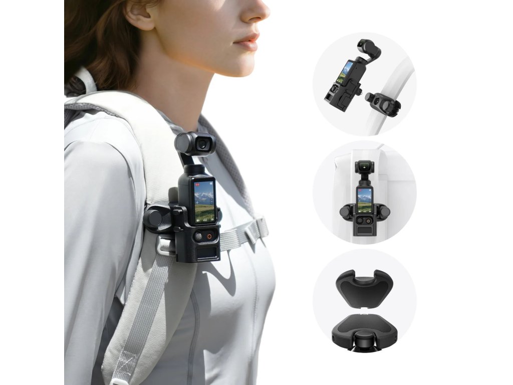 Natočte svět z vašeho pohledu. Tento chytrý držák TELESIN umožňuje bezpečně a pohodlně připevnit kameru DJI Pocket 3 na popruh batohu. Ideální pro vlogování, cestování nebo outdoorové aktivity, kdy potřebujete mít volné ruce, ale přesto zachytit každý okamžik v prvotřídní stabilitě a z úhlu, jaký běžný stativ nezvládne.