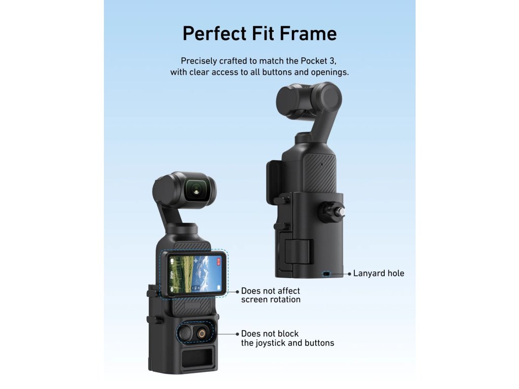 - Kompatibilita s DJI Pocket 3: přesně tvarované uchycení pro stabilní a bezpečné držení kamery bez vůlí.