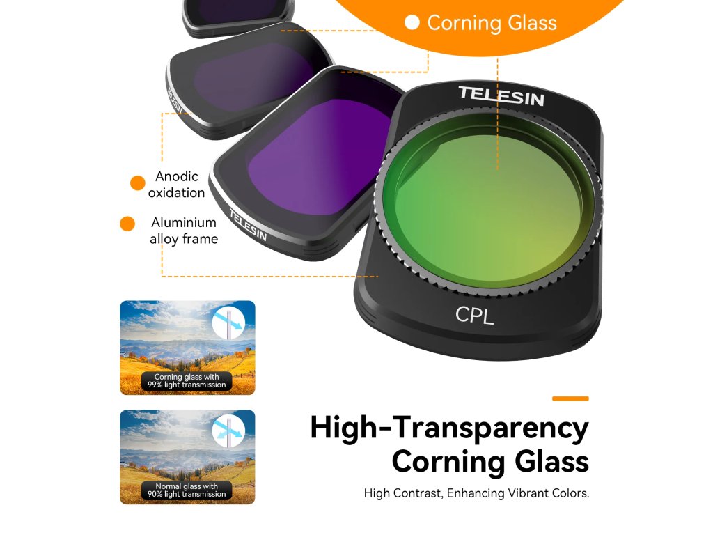 Tato sada filtrů obsahuje CPL a ND filtry (ND16, ND64, ND256) určené pro DJI Pocket 3. CPL filtr redukuje odlesky a zlepšuje sytost barev, zatímco ND filtry snižují množství světla vstupujícího do objektivu, což umožňuje delší expozici a hladší video záběry.