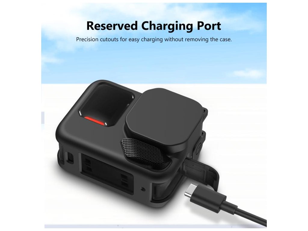 - Měkký silikon: příjemný na dotek, odolný a přitom šetrný k povrchu kamery.