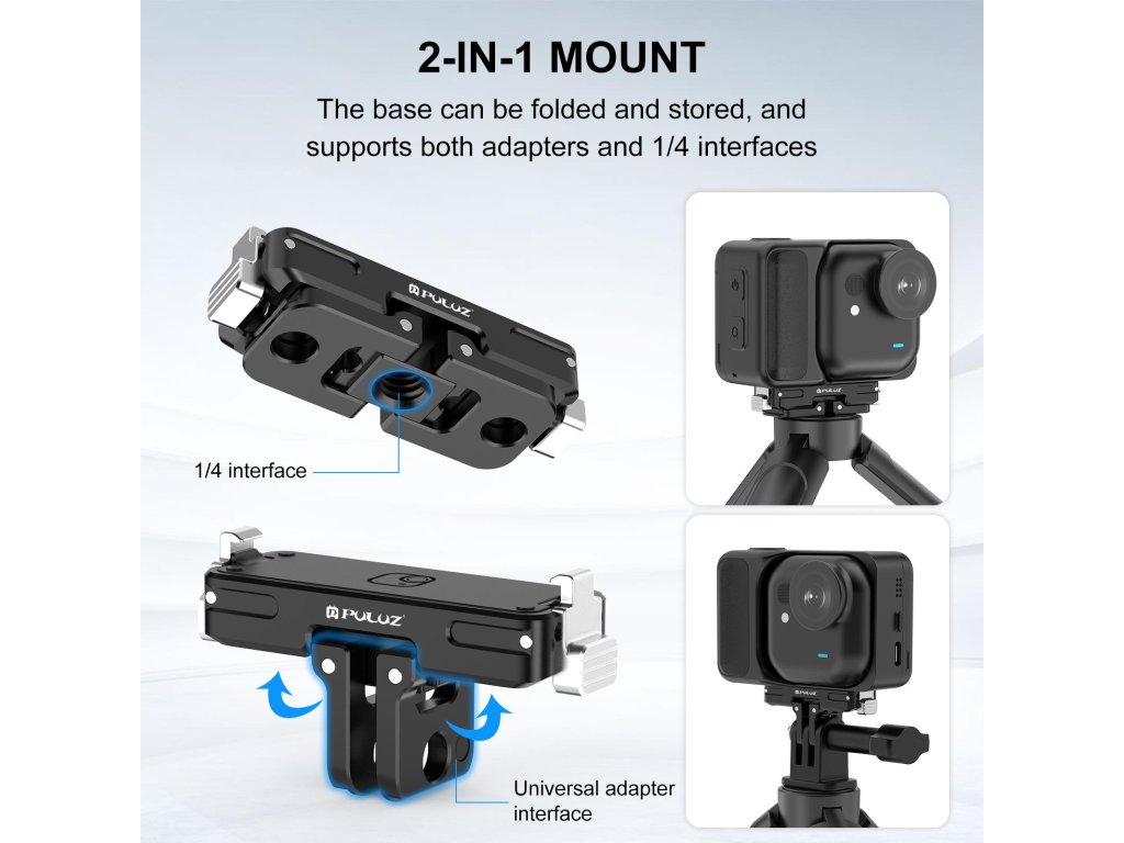 Propojte svůj Insta360 svět s příslušenstvím GoPro během vteřiny. Tento robustní hliníkový adaptér od PULUZ umožňuje snadné a rychlé uchycení kamery Insta360 GO Ultra na jakékoliv příslušenství s uchycením typu GoPro – od stativů až po selfie tyče. Díky silným magnetům a preciznímu CNC zpracování máte jistotu, že kamera bude vždy pevně držet, a přitom ji kdykoliv jednoduše odepnete.