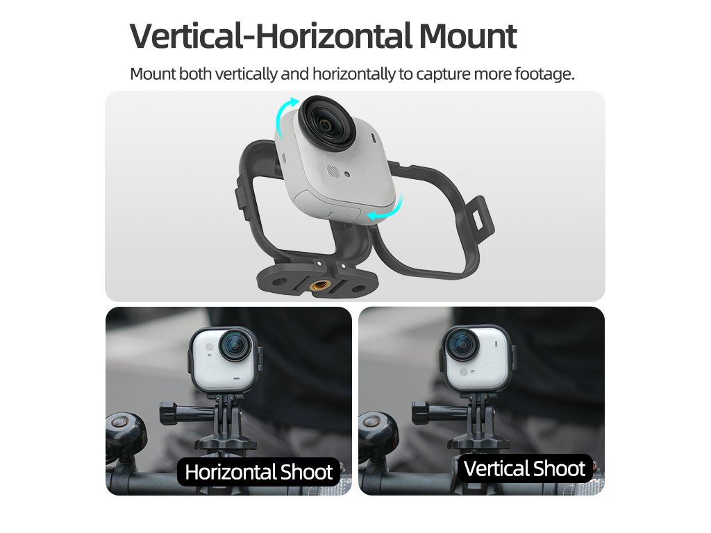 Tento praktický montážní rámeček umožní bezpečné a stabilní uchycení vaší kamery Insta360 GO Ultra na popruh batohu, ramenní popruh či jiné vybavení. Robustní konstrukce chrání kameru během pohybu a současně vám umožní rychle měnit orientaci mezi vertikální a horizontální polohou.