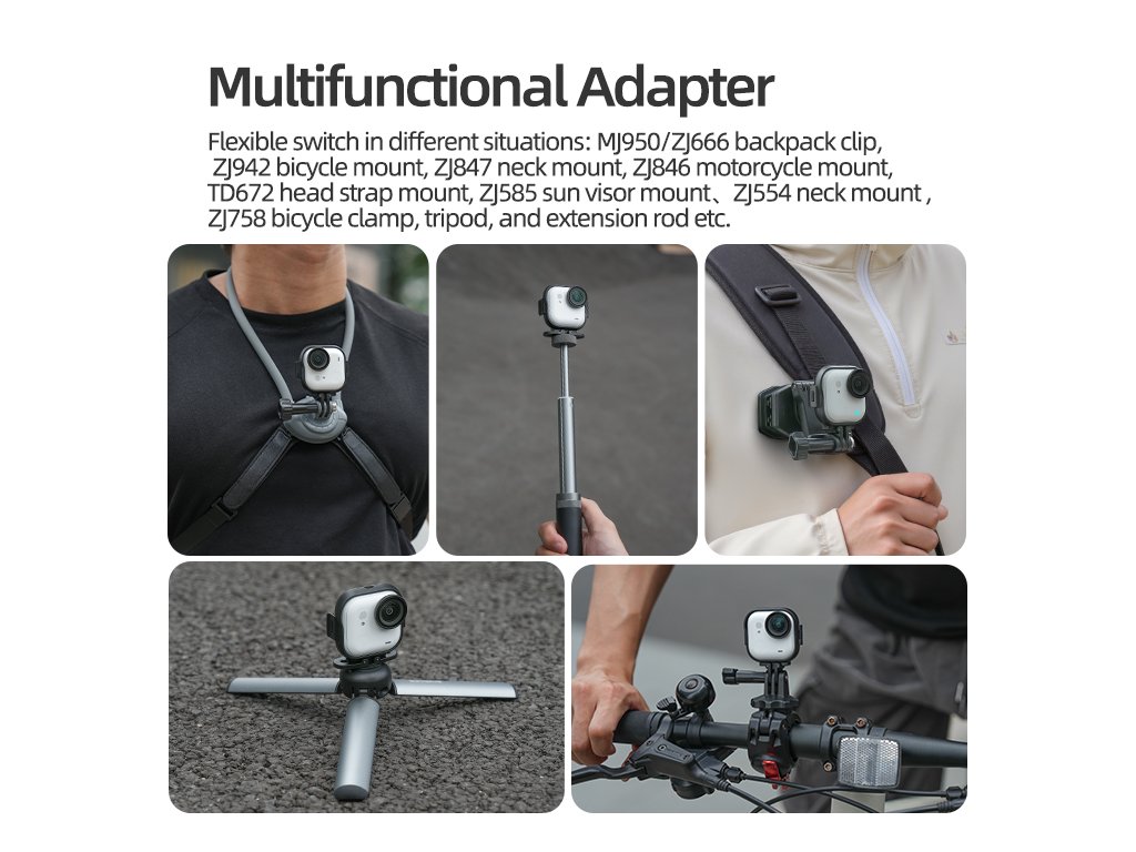- Kompatibilní s originálním Insta360 připojovacím ekosystémem i běžnými montážními prvky.