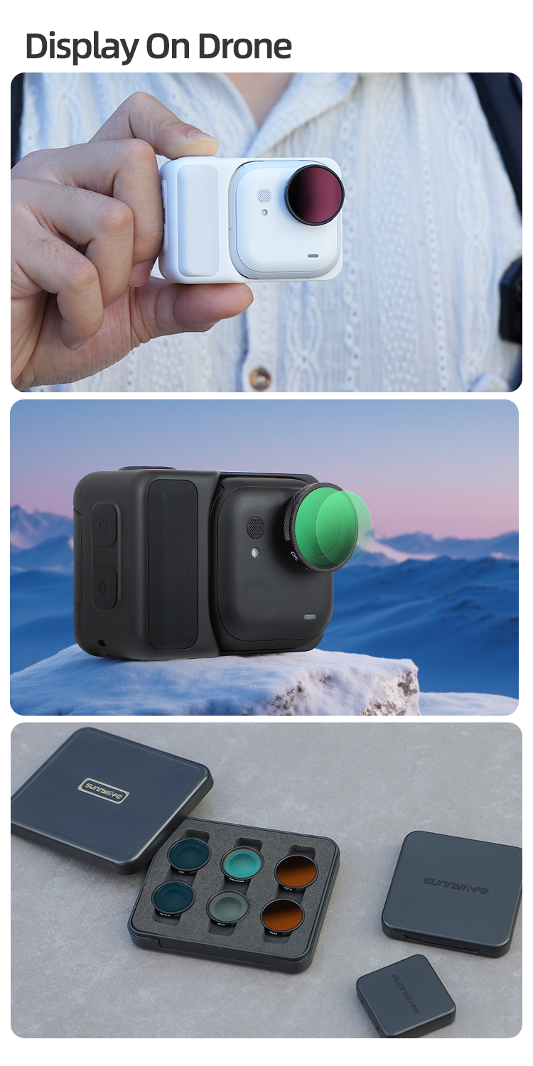 Každý filtr je navržený jako lehký, přesný a odolný doplněk, který hladce zapadne do estetického stylu kamery Insta360 GO Ultra. Hliníkový rámeček zajišťuje pevné uchycení a optické sklo podporuje čistý a detailní obraz bez zkreslení.