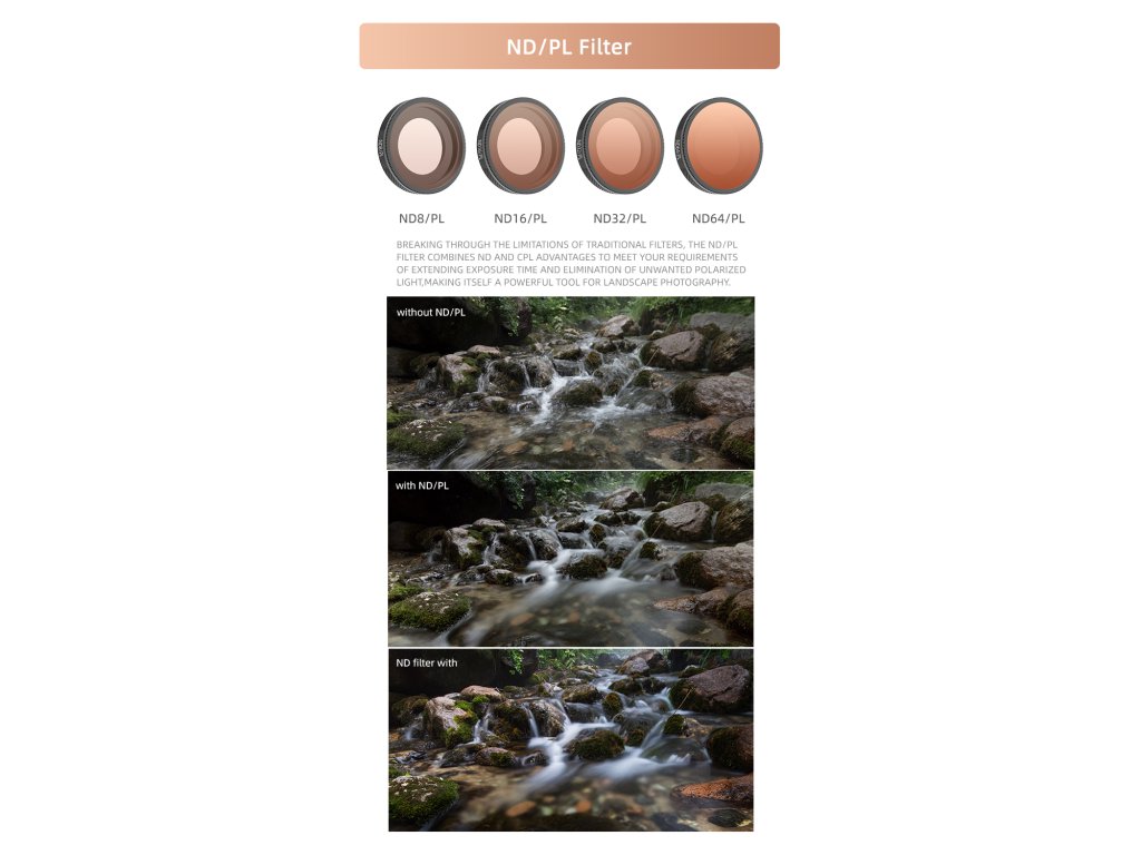 - ND16/PL filtr – skvělý pro jasné dny, výrazněji zjemňuje světlo a zvyšuje barevnou hloubku.
