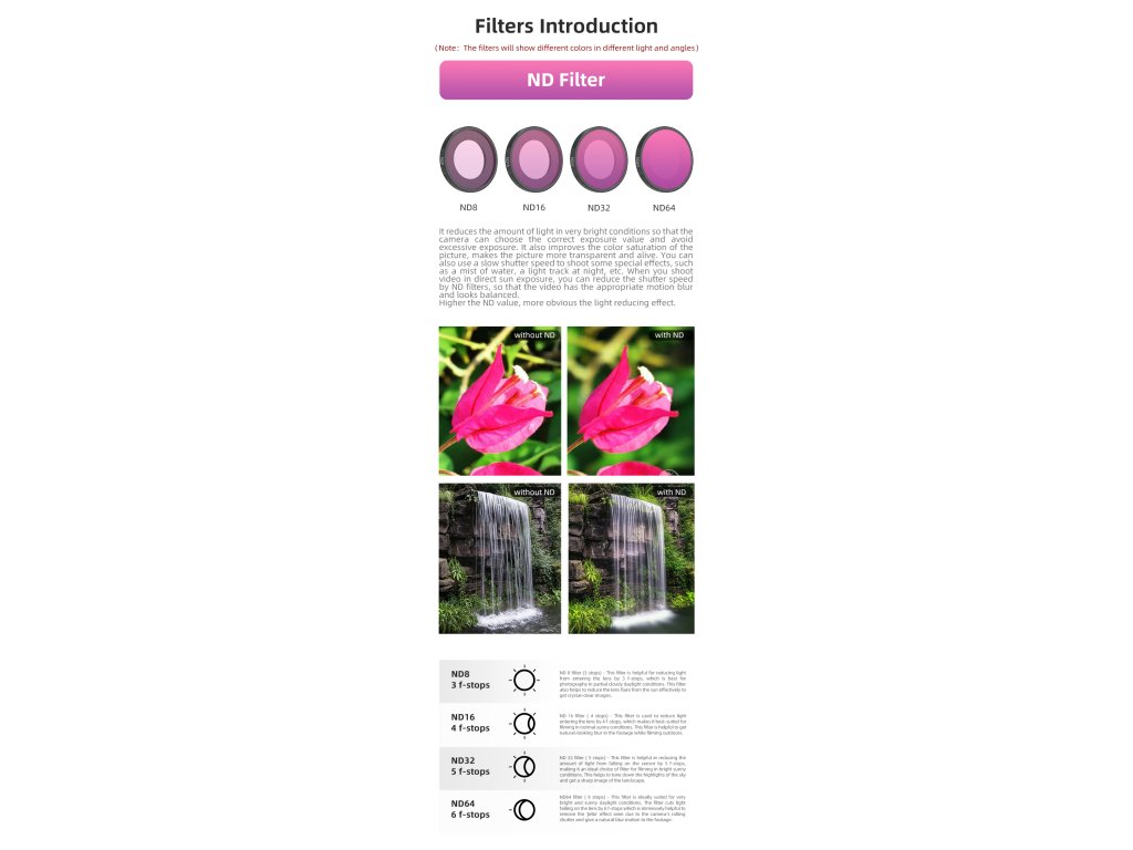 - ND64/PL filtr – nejsilnější redukce světla, perfektní do ostrého slunce nebo pro kreativní dlouhé časy.