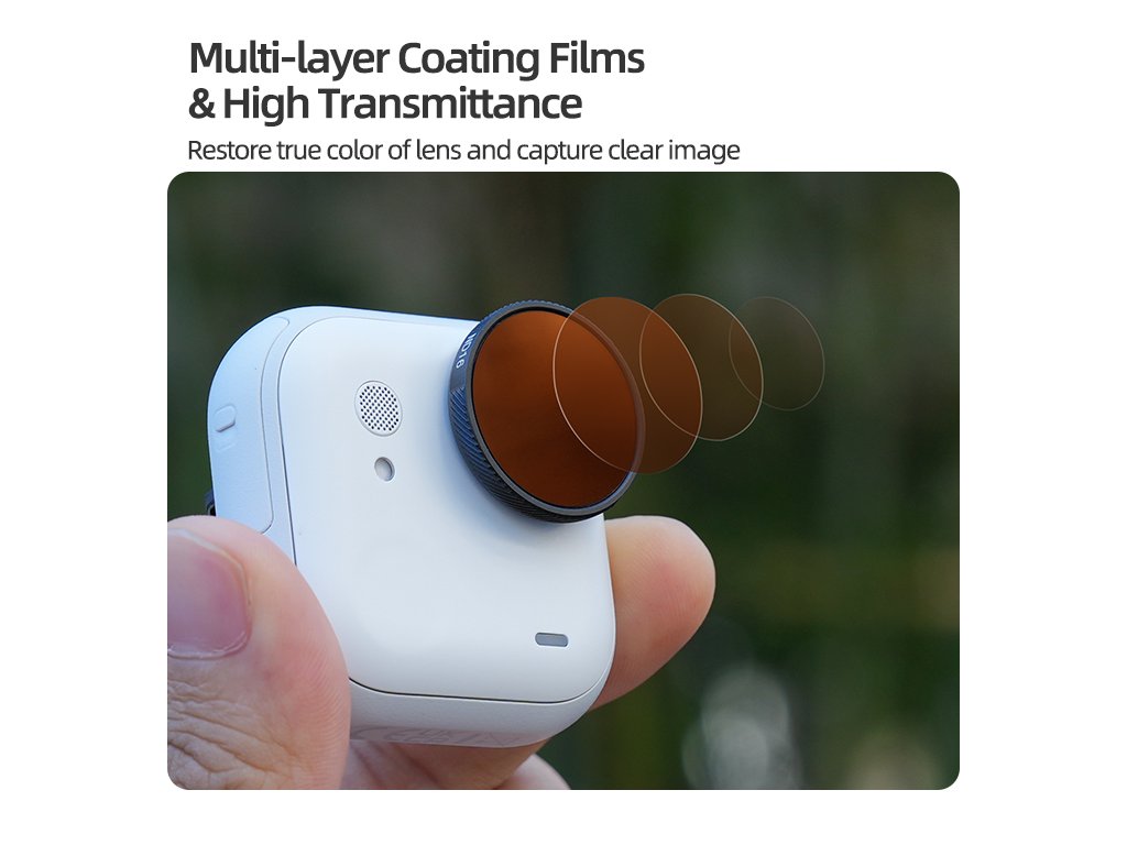 Každý filtr je navržený jako lehký, přesný a odolný doplněk, který hladce zapadne do estetického stylu kamery Insta360 GO Ultra. Hliníkový rámeček zajišťuje pevné uchycení a optické sklo podporuje čistý a detailní obraz bez zkreslení.