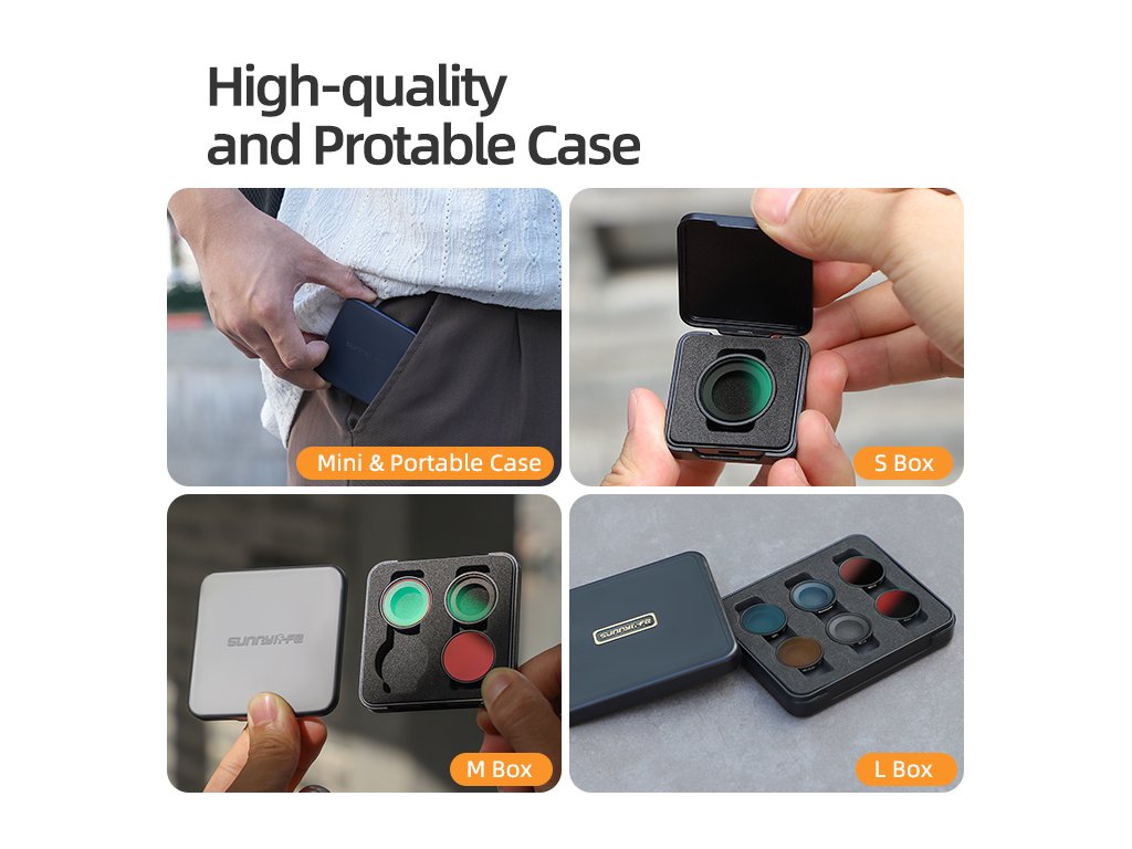 - Sada čtyř filtrů pokrývá široké spektrum světelných podmínek – od mírně zatažené oblohy až po ostré polední slunce.