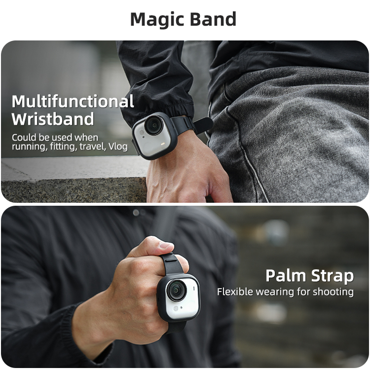 Díky variabilní konstrukci se pásek dokáže proměnit téměř v cokoli – od náramku přes popruh na dlaň, upevnění na batoh či řídítka až po obojek pro domácího mazlíčka. Jediným rychlým zacvaknutím získáte bezpečné a stabilní místo pro kameru v situacích, kdy běžné držáky nejsou po ruce.