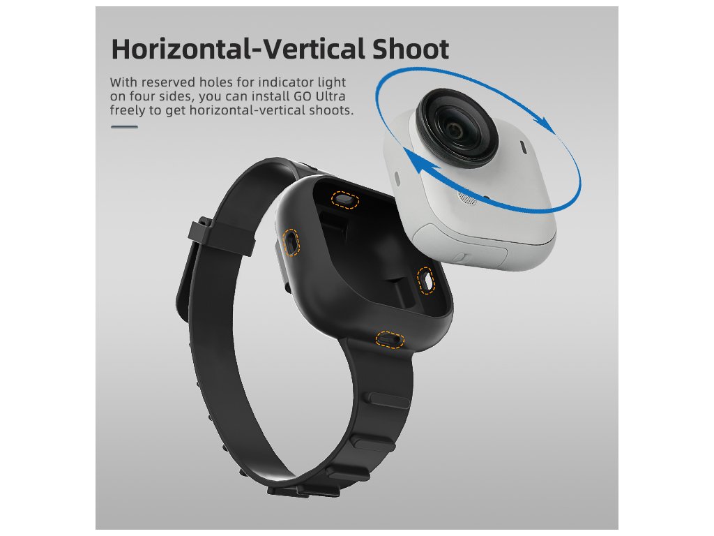 Univerzální silikonový pásek na ruku pro Insta360 GO Ultra spojuje funkci ochranného krytu a flexibilního upevnění v jednom jediném doplňku. Měkké silikonové tělo chrání vaši kameru při každodenním používání, zatímco chytré rozvržení otvorů pro kontrolku na všech čtyřech stranách umožňuje umístit kameru v horizontální i vertikální orientaci.