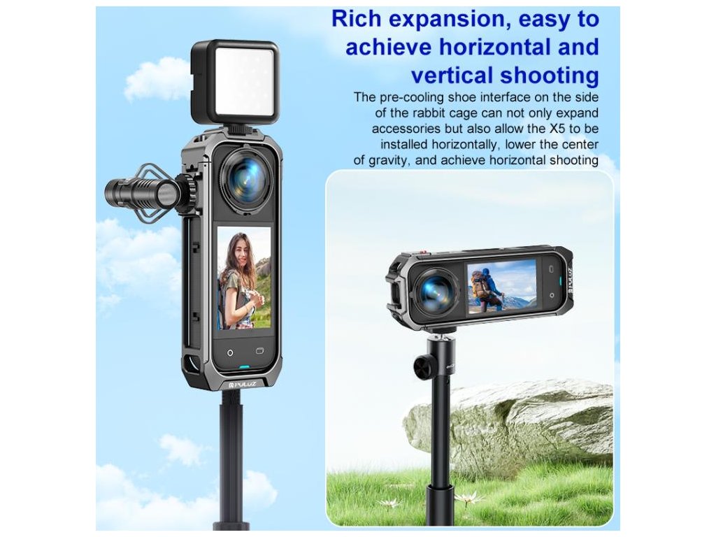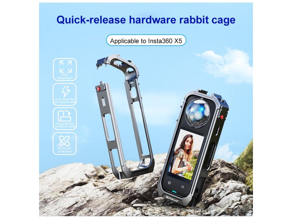 Maximální ochrana a všestrannost v jediném rámu – tento plně kovový rám pro Insta360 X5 byl navržen s důrazem na odolnost, nízkou hmotnost a praktické použití v terénu. Díky špičkové konstrukci z hliníkové slitiny je o 22 % lehčí než rám pro model X4, aniž by ztrácel na pevnosti. Včetně kvalitních větrných mikrofonních krytek pro záznam čistého zvuku i v náročných podmínkách.