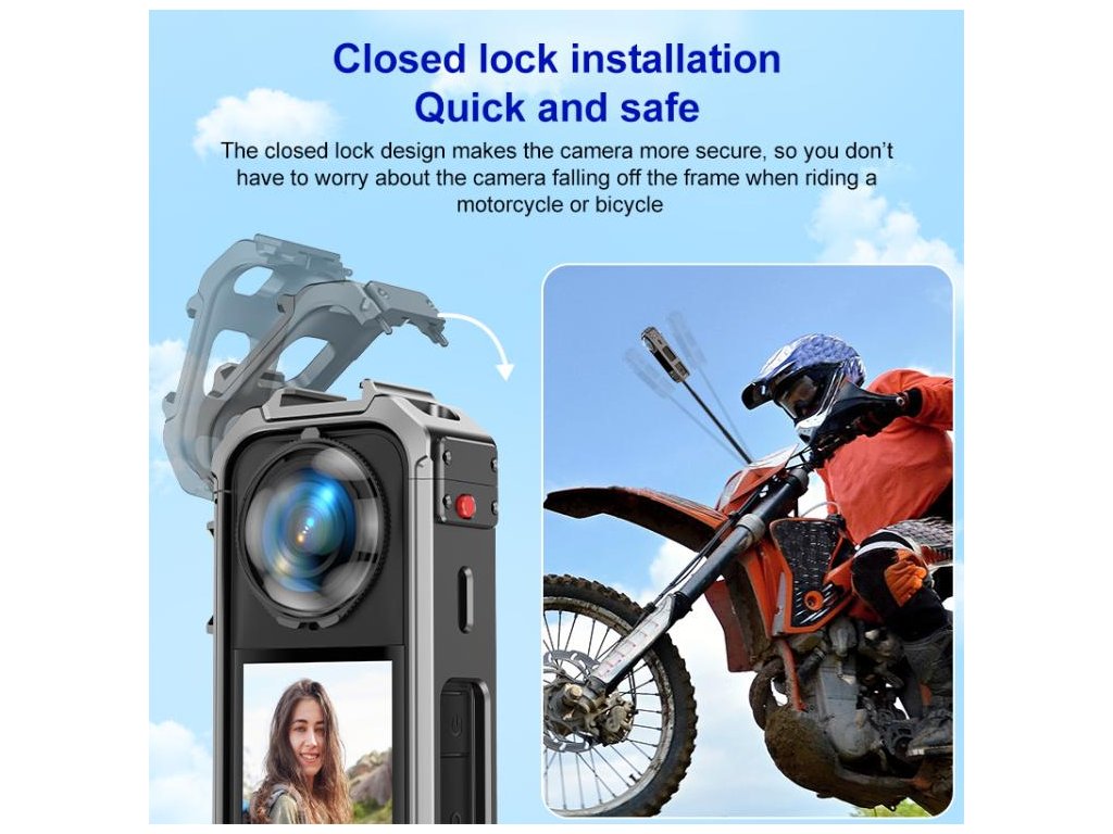 - Vynikající ochrana: Rám absorbuje nárazy a chrání kameru před poškozením při pádu nebo náročném pohybu v terénu.