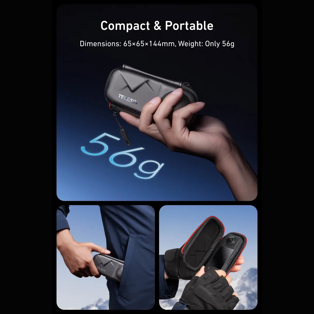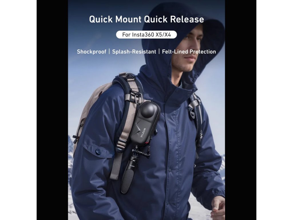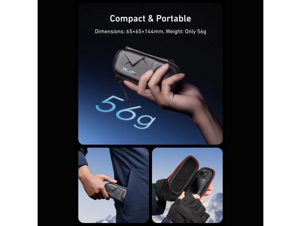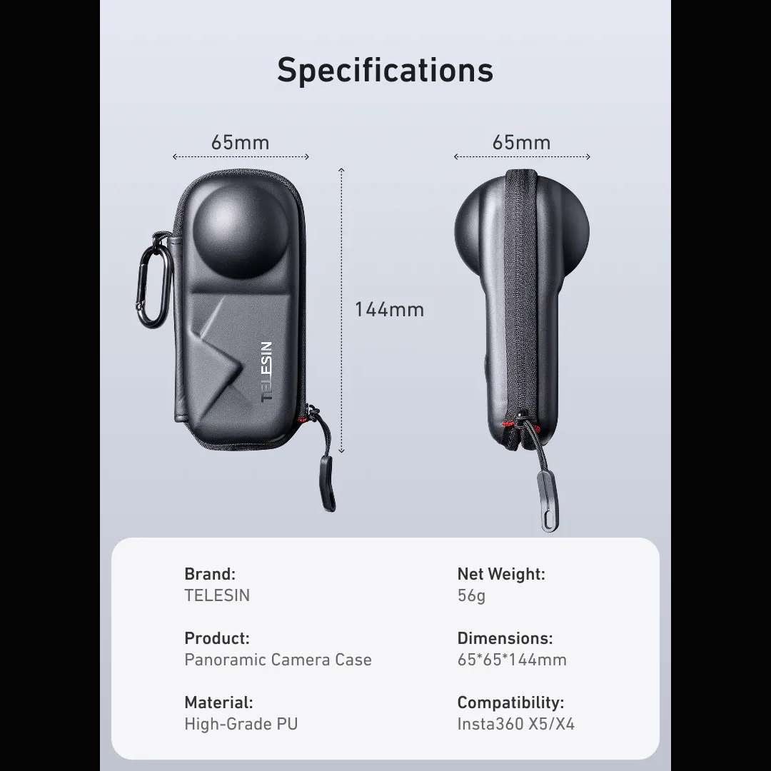 Pevné ochranné pouzdro TELESIN pro Insta360 X4 / X5 je navrženo pro bezpečné přenášení kamery při každodenním používání, cestování i akčních výpravách. Tvar pouzdra přesně kopíruje tělo 360° kamery a chrání především citlivé objektivy, které jsou u těchto modelů nejzranitelnější.