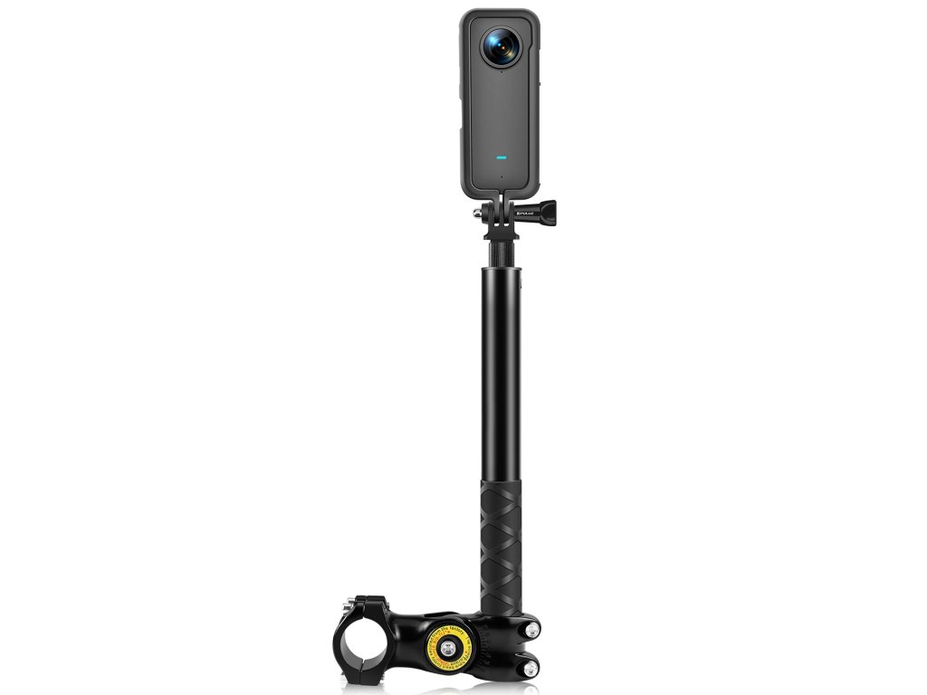 Tento set je ideálním řešením pro cyklisty a motocyklisty, kteří chtějí pořizovat 360° panoramatické záběry pomocí kamer, jako je Insta360 X5. Systém je vyroben z hliníkové slitiny a tvrzeného plastu, nabízí univerzální nastavení úhlů díky kulové hlavě a dvojitému upínacímu systému. Teleskopická tyč se dá prodloužit až na 150 cm, což zajišťuje stabilní a bezpečné natáčení.