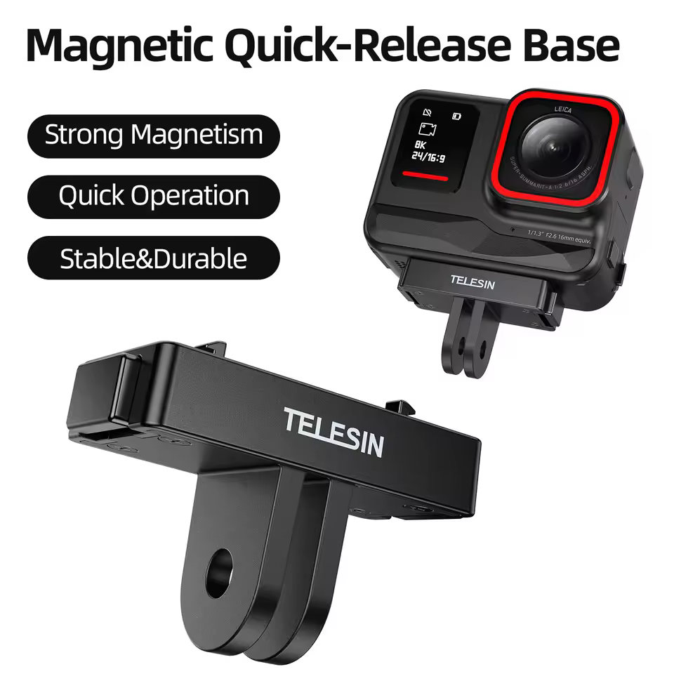 Magnetická síla, která šetří čas i nervy. Tento set rychloupínací základny a destičky od značky TELESIN vám umožní bleskově připevnit kameru Insta360 k jakémukoliv GoPro kompatibilnímu příslušenství. Díky silným magnetům a preciznímu mechanickému zámku získáte jistotu, že vaše kamera zůstane pevně na místě i během náročného natáčení.