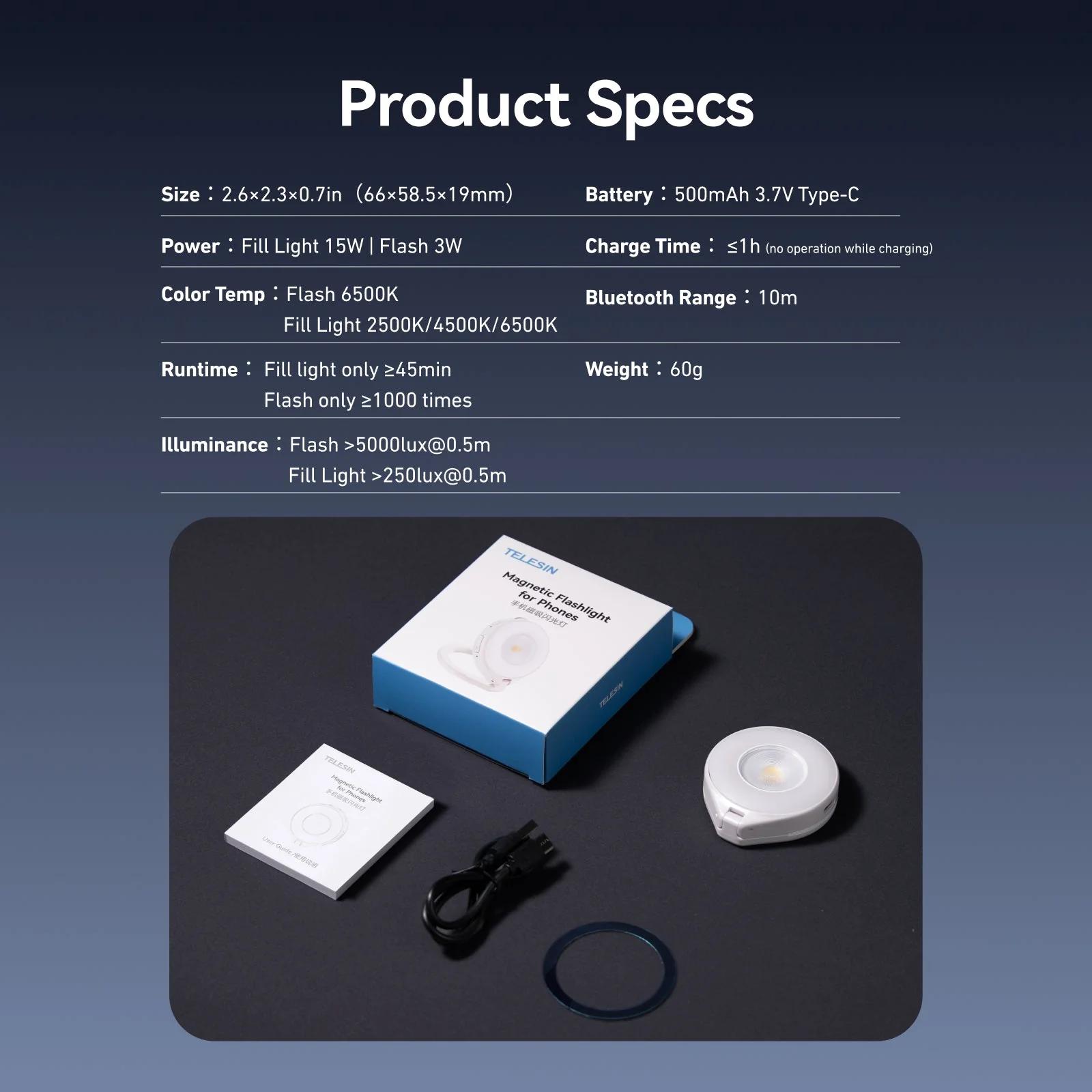 1× TELESIN MagSafe Flashlight (magnetické přisvětlovací světlo / bezdrátový blesk pro iPhone).