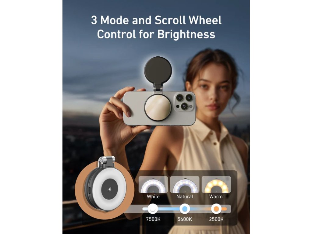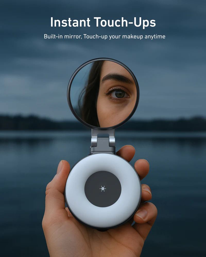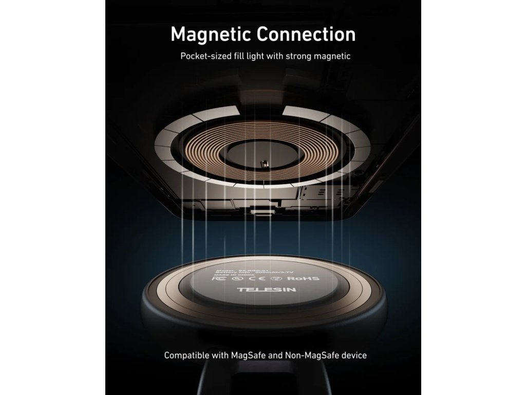 Dokonalé světlo a dokonalý záběr – kdykoliv a kdekoliv. TELESIN přináší elegantní MagSafe LED světlo s integrovaným zrcátkem, které okamžitě promění váš telefon v profesionální nástroj pro focení i video hovory. Je lehké, kompaktní a díky magnetickému uchycení drží přesně tam, kde ho potřebujete – na telefonu, notebooku i stativu.