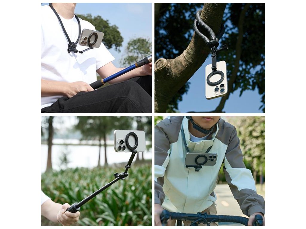 Sportovce, cestovatele, vlogery i tvůrce obsahu, kteří chtějí používat telefon stejně snadno jako akční kameru – s jistotou pevného uchycení a svobodou pohybu.