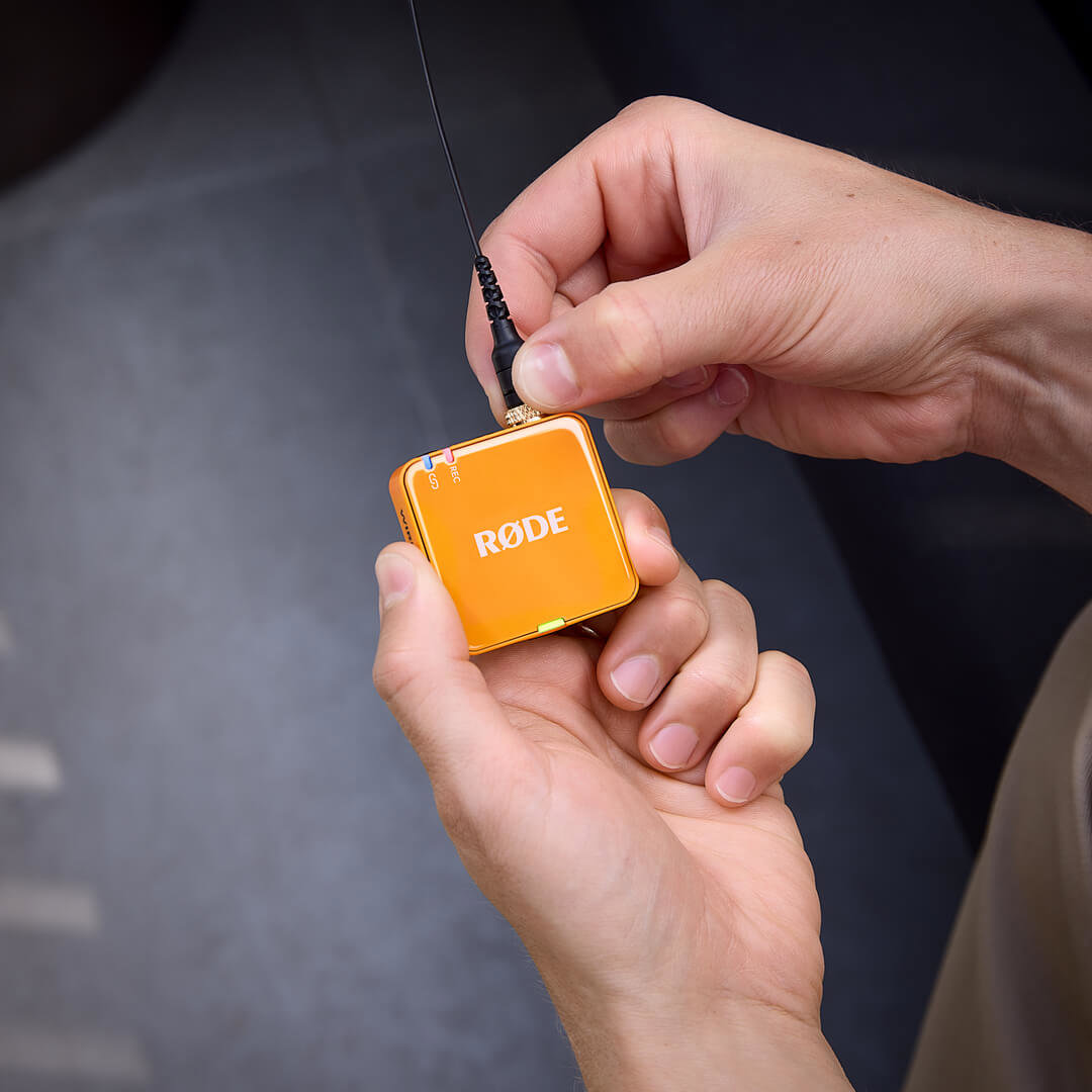 - Bezdrátový systém RØDE Wireless GO Gen 3 má vestavěné baterie s plug-in power detekcí
