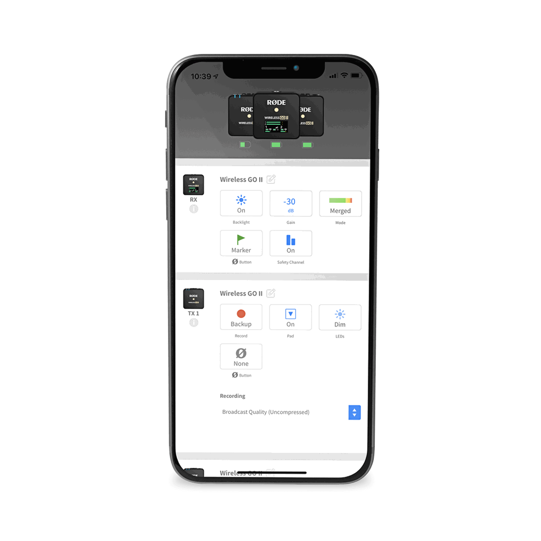 Aplikace RØDE Central vám poskytne plnou kontrolu nad vaším RØDE Wireless GO Gen 3. Umožňuje snadnou konfiguraci a personalizaci nastavení přímo na vašem počítači nebo mobilním zařízení. Můžete přizpůsobit zvukové profily, upravit zisk, spravovat nahrávky nebo aktivovat pokročilé funkce, jako je například 32bitové float nahrávání. Intuitivní rozhraní aplikace zajišťuje rychlý přístup ke všem důležitým funkcím, což vám umožní připravit mikrofon přesně podle požadavků vašeho projektu.