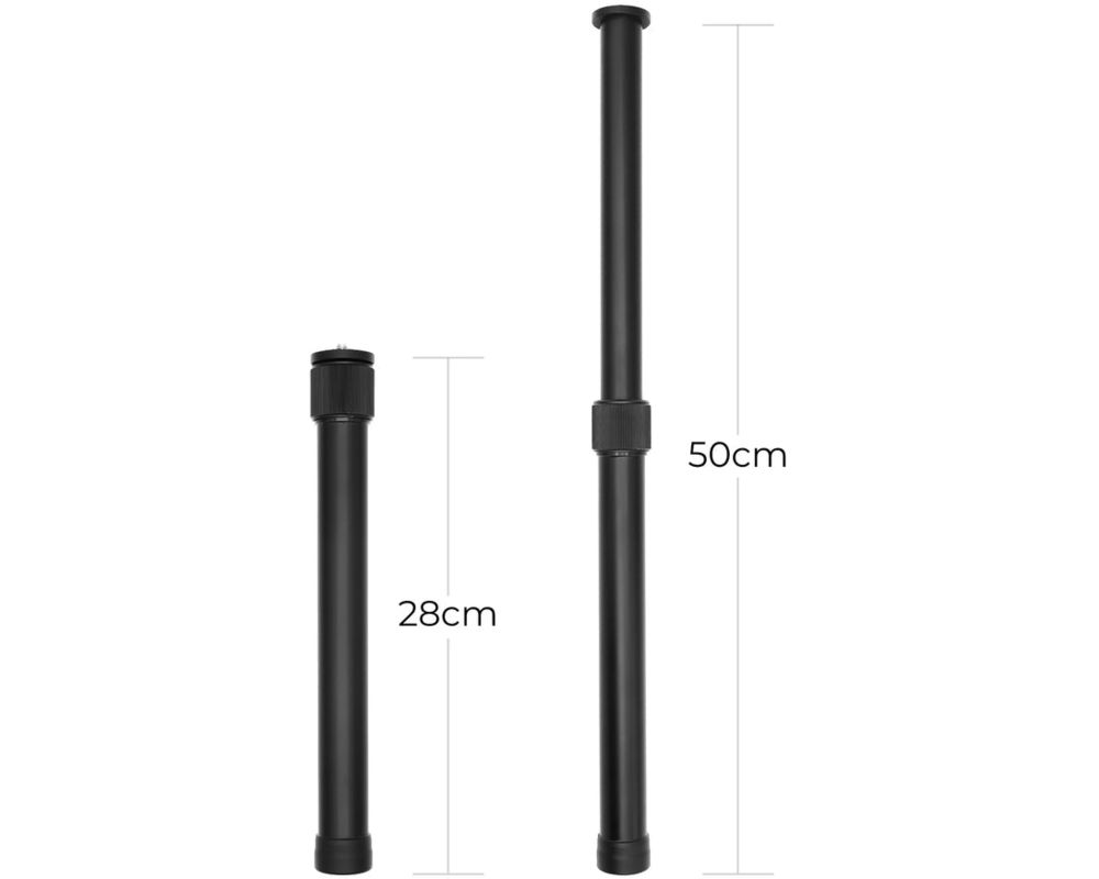 Nástavec je vyrobený z hliníku a používá standardní 1/4 závit. Je určený pro gimbaly Hohem iSteady MT2, M6, XE, Mobile+, V2s, X2, X, V2. Ve složeném stavu má 28,2 cm, po vysunutí až 50,8 cm, přičemž samotný rozsah vysunutí je cca 22,6 cm.