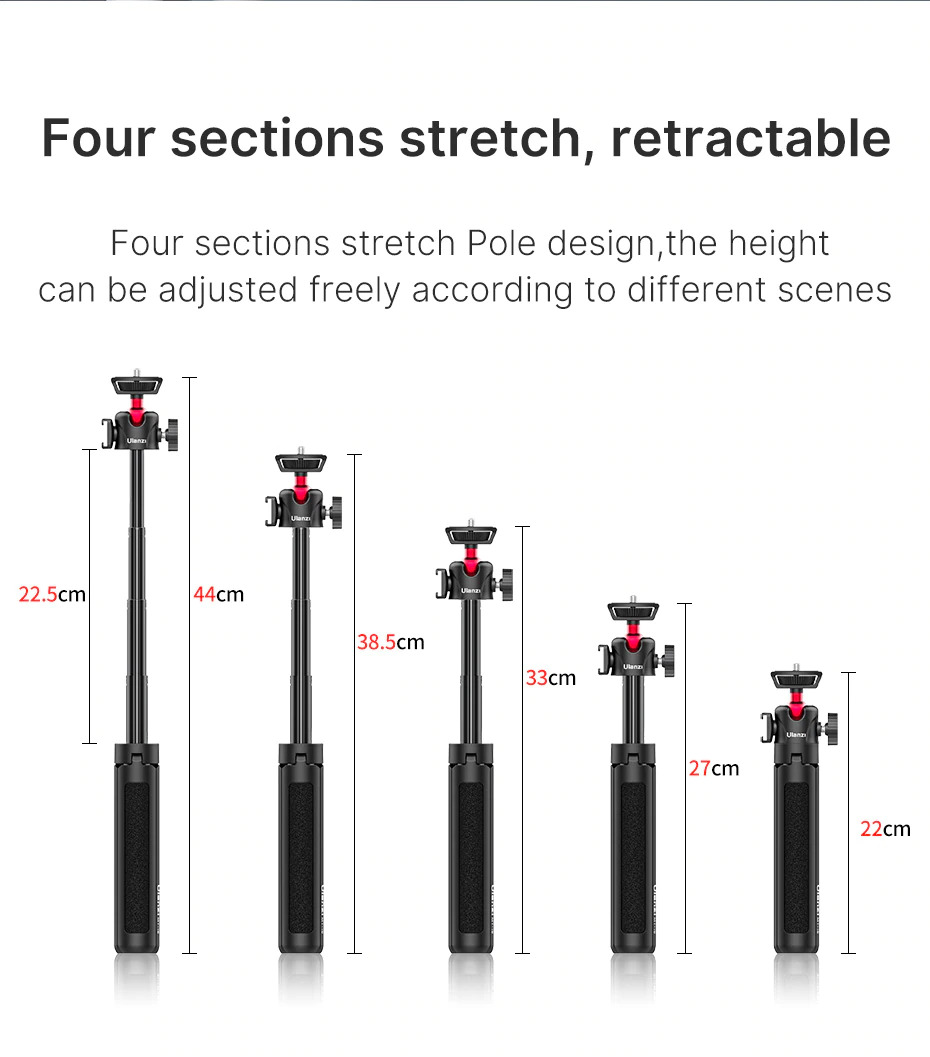 Pevná selfie tyč se stativem, sáňkami a kulovou hlavou pro foťáky, kamery i telefony - Ulanzi MT-16