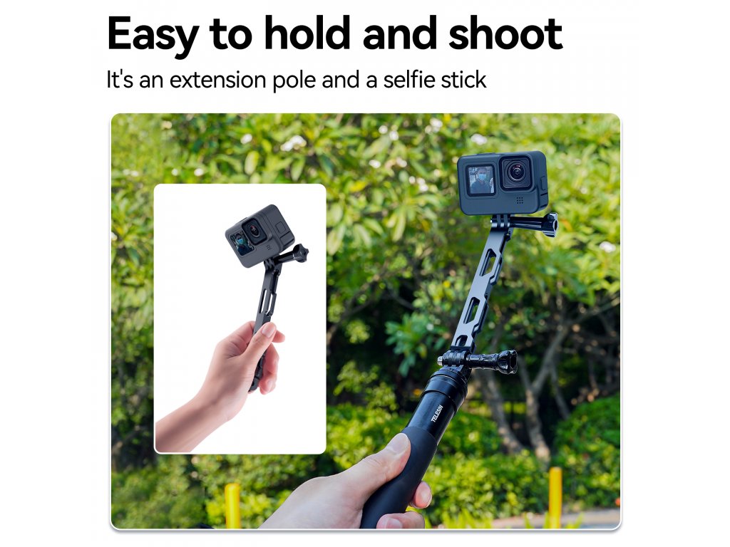 Robustní a odolný držák vyrobený z hliníkové slitiny, ideální pro akční kamery, jako je GoPro. Jeho modulární design umožňuje snadnou instalaci a demontáž na zrcátkový držák motocyklu. S univerzální kulovou hlavou můžete snadno nastavit různé úhly natáčení, což zajišťuje flexibilitu při pořizování záběrů z první osoby, živých přenosů, selfie nebo pro použití s navigací.