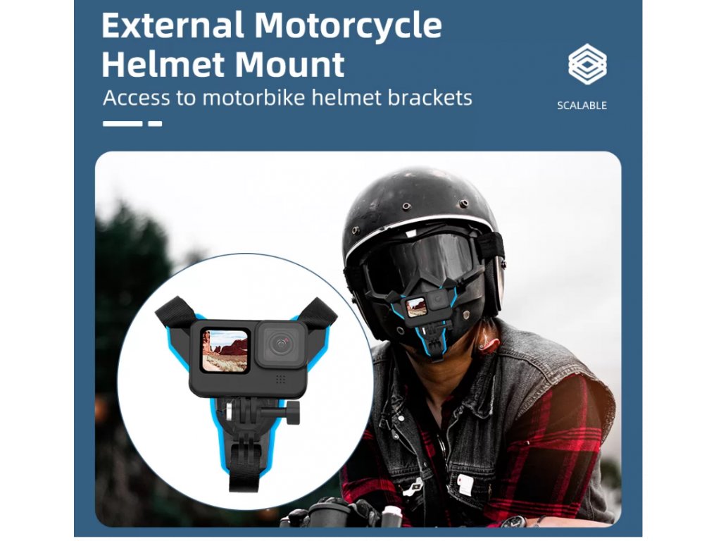 Díky tomuto držáku můžete svou akční kameru včetně GoPro Hero 10 / 11 / 12 / 13 jednoduše připevnit na bradu Vaší motorkářské (nebo jiné přilby). Tím získáte široký, ničím neblokovaný POV záběr Vaší jizdy, rukou, řidítek a okolního dění přímo z helmy, jako byste nahrávali co vidí Vaše oči.