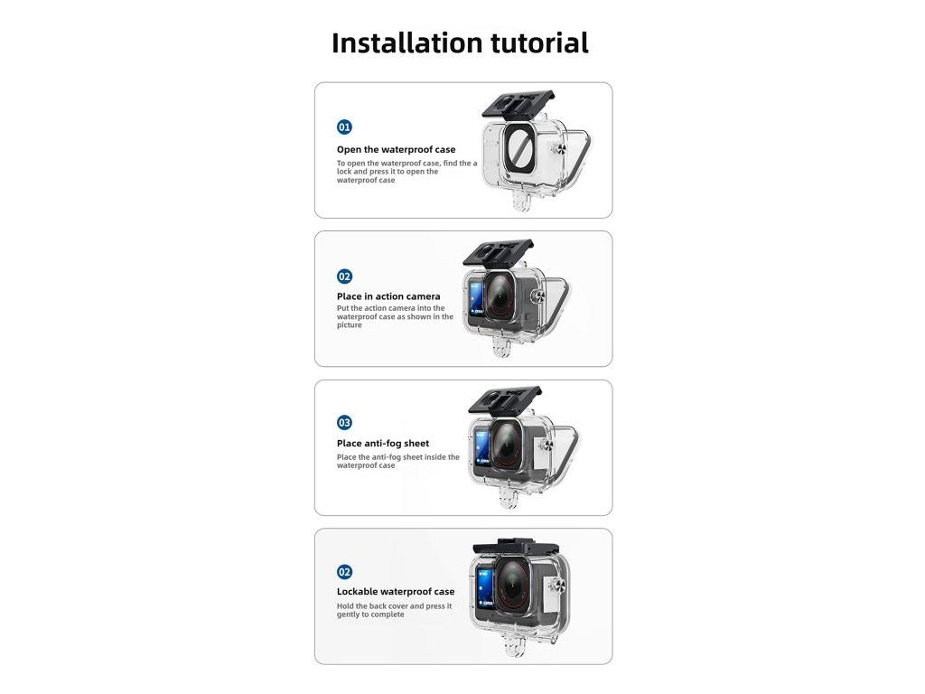 - Komplexní ochrana: chrání kameru před vodou, nárazy, prasklinami, prachem a poškrábáním.