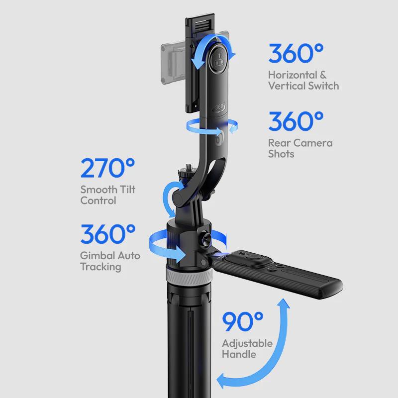 Chytrý stativ a selfie tyč v jednom, která vás díky vestavěné AI kamerové hlavě udrží neustále v záběru – ať natáčíte videa, streamujete, tancujete nebo cvičíte před kamerou. Stativ se umí otáčet o 360°, automaticky vás sleduje a díky výsuvu až na 163 cm se hodí jak na záběry od stolu, tak na plnohodnotné celotělové snímky.