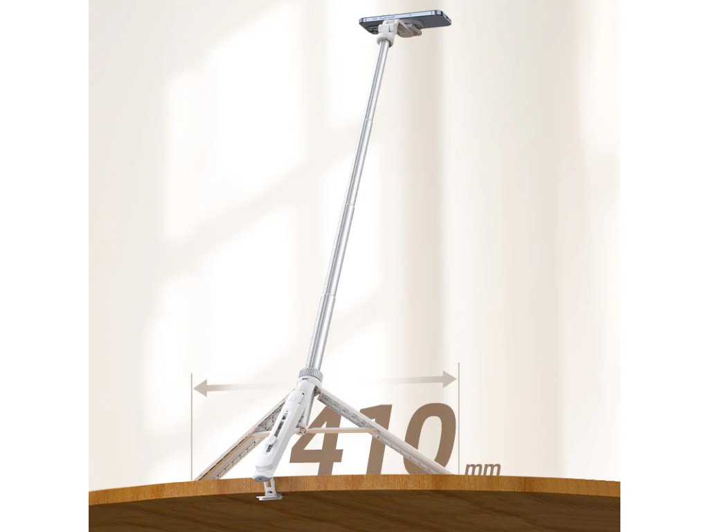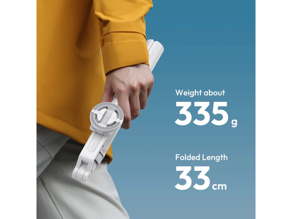- Lehký a přenosný: S hmotností pouhých 335 g a skládací konstrukcí je tento selfie stick snadno přenosný a vhodný pro cestování.