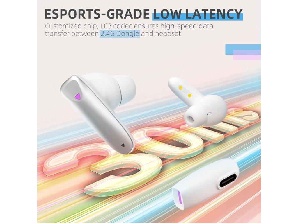 Nízká latence eSports: Vlastní čipová sada a kodek LC3 zajišťují vysokorychlostní přenos dat mezi 2,4G hardwarovým klíčem a sluchátky a dosahují nízké latence herní úrovně pouhých 30 ms pro plynulé a bezproblémové hraní bez přerušení.